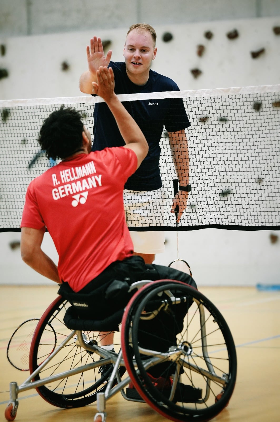 Der BVBB dankt dem Pro Sport 24 Berlin für einen erfolgreichen Test der Integra Badminton Regeln im Turnierformat. Die neuen Regeln erlauben mehr Integration und Chancengleichheit für Spieler*innen mit Behinderungen im regulären Spielbetrieb. Hierbei wird z.B. gegen Rollstuhlfahrende auf dem Halbfeld gespielt (siehe Abbildung) und diese haben kein Vorderfeld im Doppel. In Spielen mit Präsidiumsreferent und Para-Spieler Rick Hellmann wurde das neue Format erprobt.