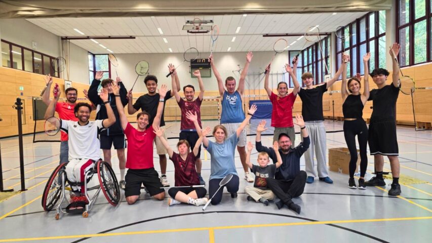 13. Oktober 2025Wenn in Berlin der Marathon läuft, dann ist ein Durchkommen bekanntlich schwierig. Deshalb trafen sich dieses Mal etwas weniger Teilnehmer:innen als gewohnt zum inklusiven Badminton. Um so mehr haben wir uns gefreut, zwei Gäste begrüßen zu dürfen. Herr König von der Senatsverwaltung für Inneres und Sport und Herr Ronneburg, Mitglied im Ausschuss für Sport und Sportpolitischer Sprecher von Die Linke im Abgeordnetenhaus, waren zu Besuch. Sie haben sich über unser Projekt informiert und auch mit uns gemeinsam gespielt – richtig stark! Die Stimmung war wie bei jedem unserer Treffen super. Sportliches Highlight war dieses Mal das Dänisch Doppel mit Rick.