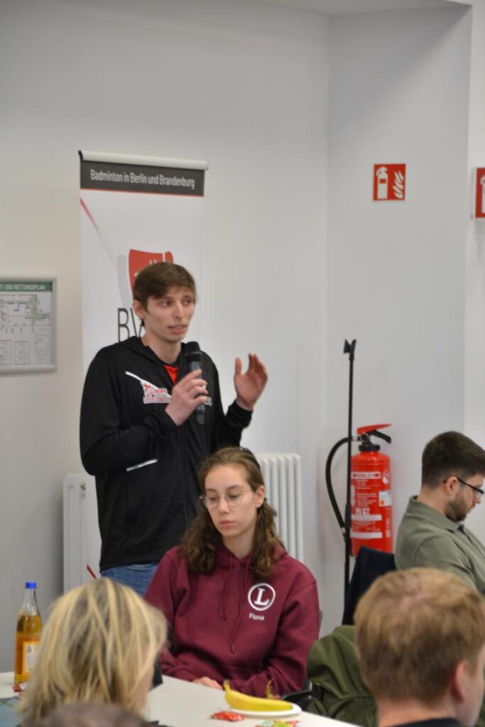 Spannende Einblicke in den Leistungssport gab Landestrainer Jan-Henrik Gleis, der aktuelle Projekte und Entwicklungen vorstellte. Ergänzend berichtete Tobias Görisch über den Wechsel an die Eliteschule des Sports im Olympiapark (Poelchau-Schule). Dieser Schritt schafft verlässliche und zukunftsorientierte Rahmenbedingungen für den Leistungssport im Badminton. Die positiven Rückmeldungen zeigen: Die Athlet*innen fühlen sich am neuen Standort gut aufgehoben.