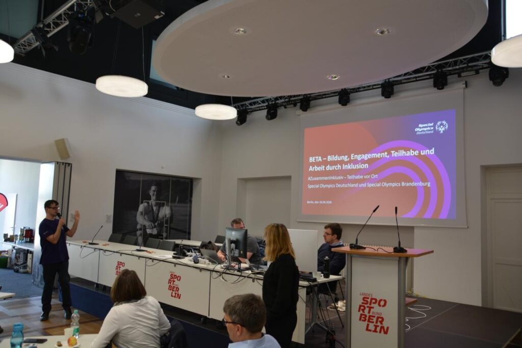 Ein besonderer Impuls kam von Special Olympics Brandenburg mit der Vorstellung des BETA-Projekts. Ziel ist es, Menschen mit geistiger Beeinträchtigung den Zugang zum allgemeinen Arbeitsmarkt zu erleichtern. Die Brandenburger Vereine sind eingeladen, sich als Netzwerkpartner zu engagieren – sei es als Türöffner zu Arbeitgebern oder durch eigene inklusive Einsatzmöglichkeiten im Vereinsalltag, bei Veranstaltungen oder im Trainingsbetrieb.